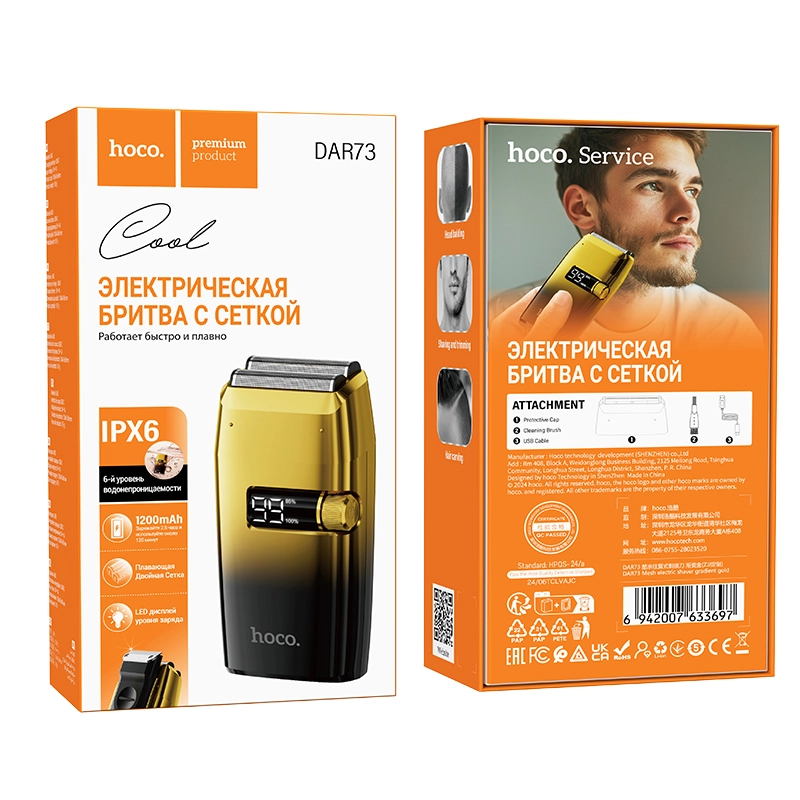 این ماشین اصلاح با وزن فقط ۱۶۷ گرم و ابعاد جمعوجور ۱۳۰×۴۷×۶۸ میلیمتر طراحی شده تا بهراحتی توی دست جا بگیره. بدنهاش از پلاستیک ABS و استیل ضدزنگ ساخته شده و دارای تیغه دوبل شناور، تیغ خطزن کنار صورت و نمایشگر دیجیتال LCD برای نمایش میزان شارژ و وضعیت عملکرده. باتری داخلی ۱۲۰۰ میلیآمپرساعتی داره که در ۲.۵ ساعت شارژ کامل میشه و تا ۱۲۰ دقیقه استفاده مداوم رو فراهم میکنه. درجه حفاظت IPX6 باعث میشه دستگاه در برابر رطوبت و شستوشو مقاوم باشه.