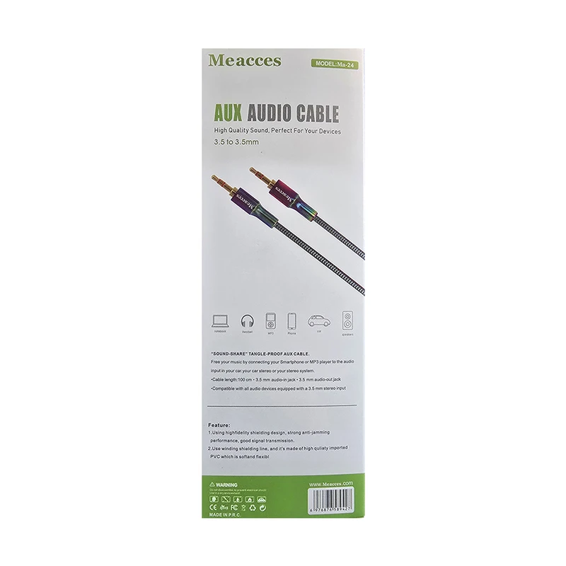Meacces Ma-24 برای کسایی که دنبال یه کابل AUX با کیفیت ساخت خوب، طول مناسب و قیمت اقتصادی هستن، گزینهای قابلاعتماده