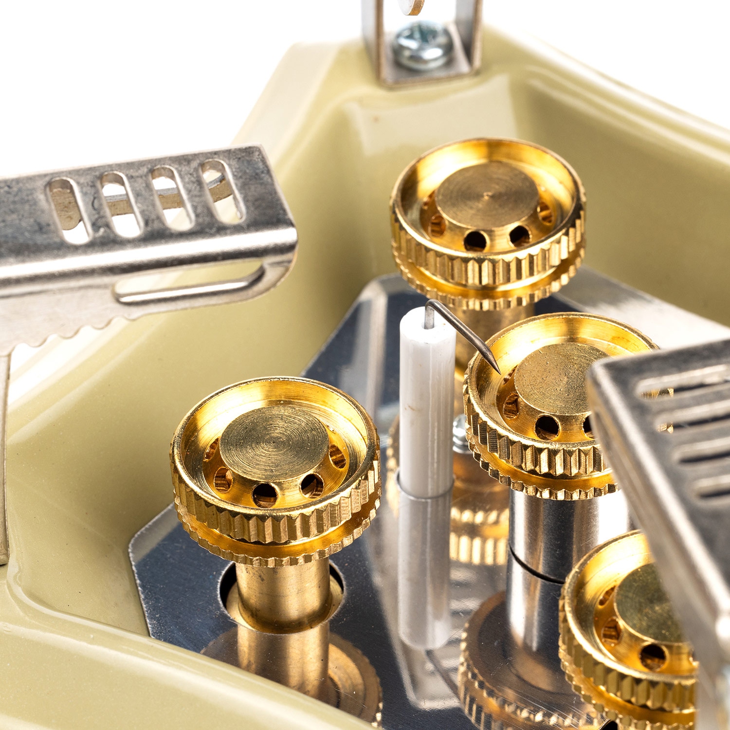 مجهز به جرقه‌زن پیزو اتوماتیک، پایه‌های ضدلغزش، و کیف حمل مقاوم برای راحتی بیشتره.