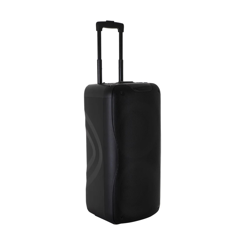 باتری قدرتمند ۷۵۰۰ میلیآمپر ساعتی تا ۶ ساعت پخش مداوم رو تضمین میکنه و طراحی چمدانی با دستهی تلسکوپی و چرخدار، حملونقل رو راحت کرده. همراه با اسپیکر، یک میکروفن بیسیم، ریموت کنترل و کابل AUX هم ارائه میشه.