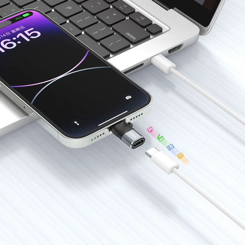 این تبدیل کوچک و خوش‌ساخت، بهت اجازه می‌ده کابل یا فلش تایپ‌سی رو به آیفون یا آیپد وصل کنی بدون افت سرعت یا دردسر اضافی.