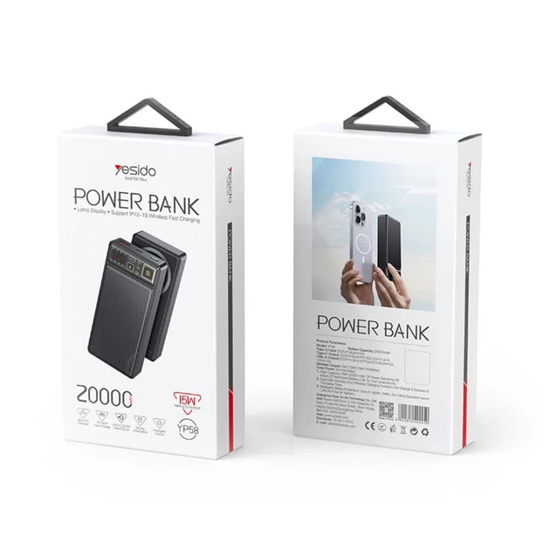توی تاکسی، جلسه یا سفر، وقتی شارژ گوشی رو به صفر نزدیک می‌شه، YP58 مثل یه نجات‌دهنده بی‌صدا وارد می‌شه.، پاوربانک یسیدو YP58 یسیدو با ظرفیت ۲۰۰۰۰ میلی‌آمپر یه انتخاب اقتصادی و کاربردیه.