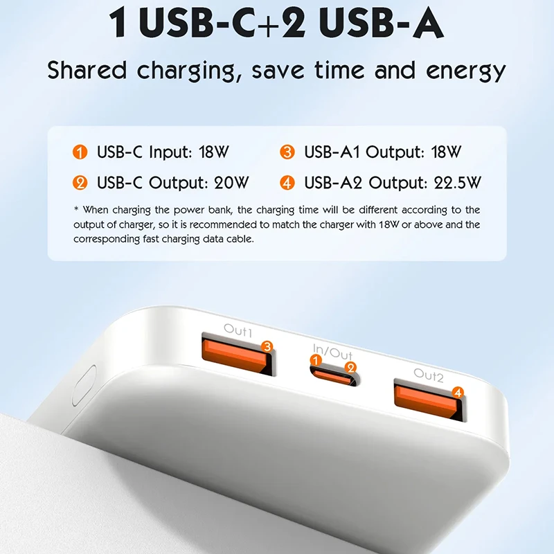 ویژگی خاص PQ12، شارژ وایرلس ۱۵ واتی با قابلیت مغناطیسی هست که برای گوشیهای مجهز به Qi یا MagSafe کاملاً مناسبه. همچنین با داشتن دو پورت USB-A و یک پورت Type-C، امکان شارژ همزمان چند دستگاه رو فراهم میکنه. نمایشگر LED درصد شارژ باقیمانده رو نشون میده و بدنهی ساختهشده از پلاستیک ABS و PC ضدحریق، دوام و ایمنی رو تضمین میکنه.
